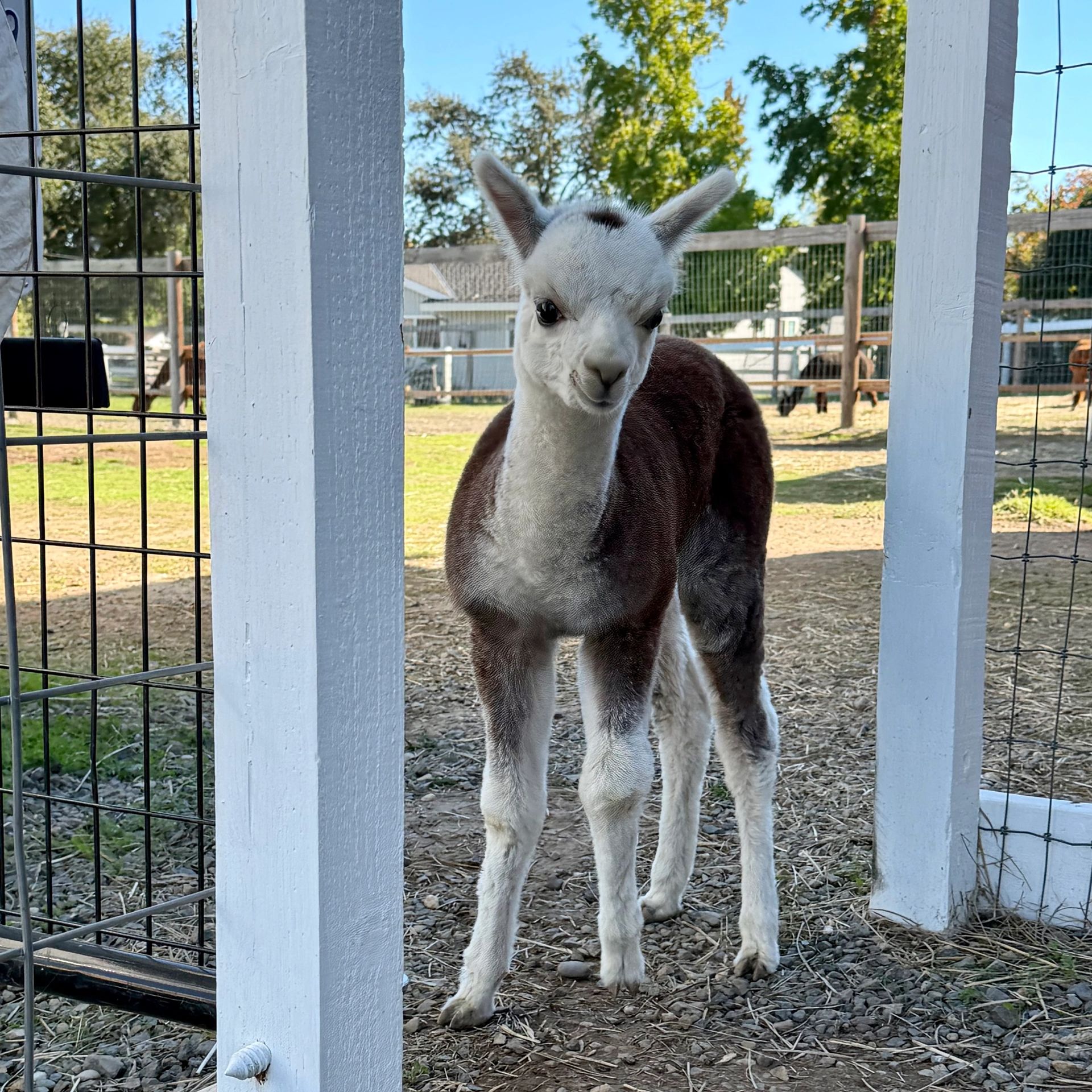 Meet Alouette's first cria, Alouette's Nicolette, born the same day as Artie - November 5, 2022. She is a beautiful fawn. Her sire is El Qieto,